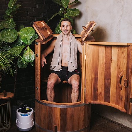 The comfortable temperature varies for each person, but typically ranges between 40-45°C. You can adjust the temperature using the steam generator. Since the humidity inside the Fitosauna reaches 99%, the heat feels more intense compared to a traditional sauna, even at lower temperatures.